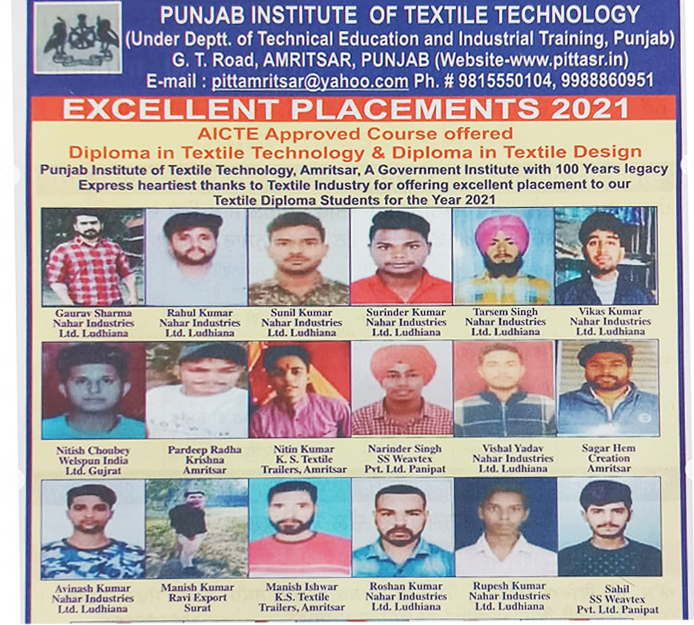Punjab Institute of Textile Technology, Amristar (PITT), one of the oldest and pioneer institutes of India was established in 1920 by the Punjab Government.